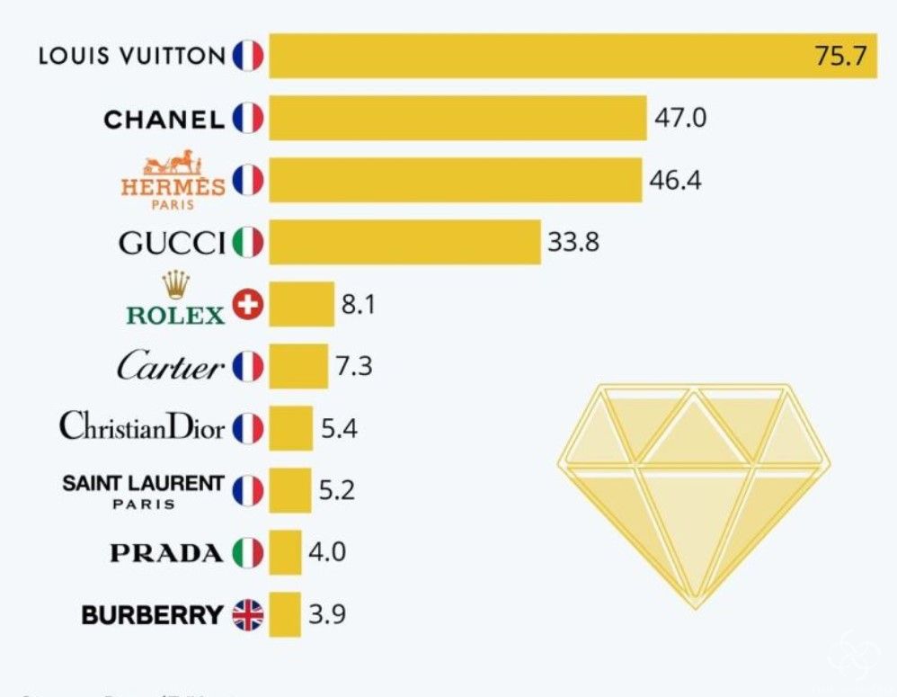 全球十大奢侈品牌,一个一骑绝尘,两个伯仲之间!
