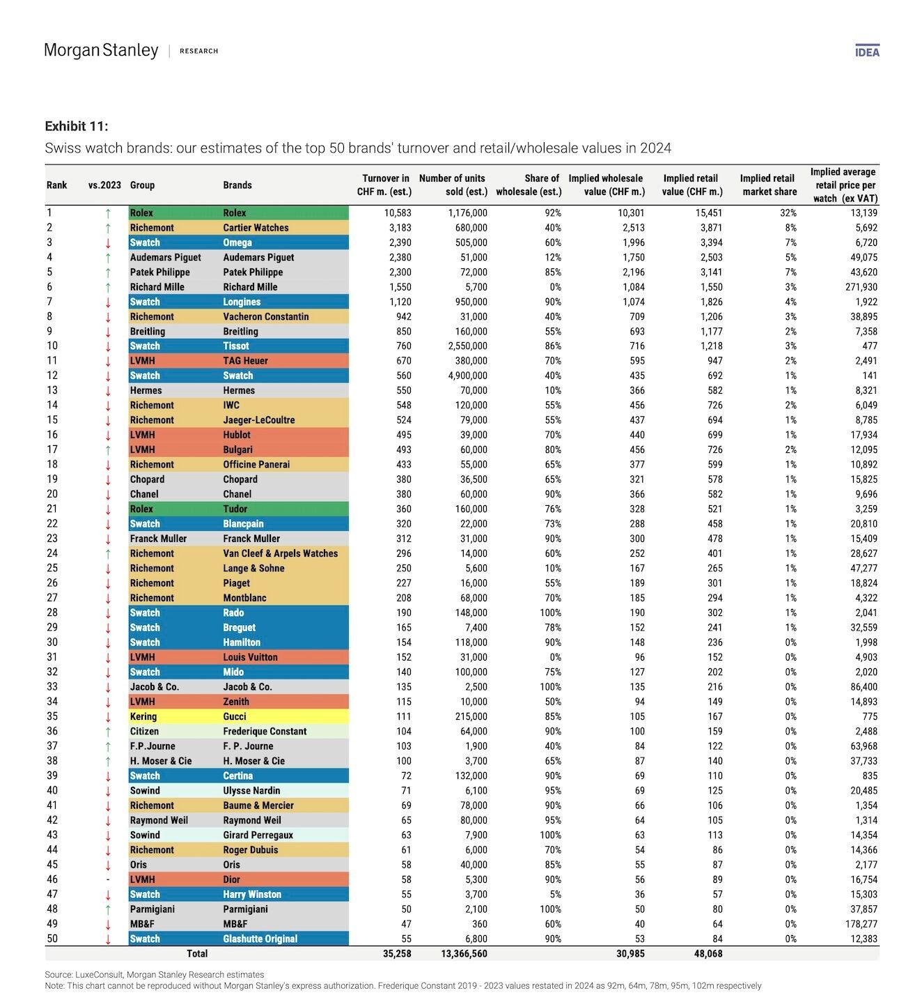 2025摩根士丹利x LuxeConsult“全球钟表品牌排行榜发布