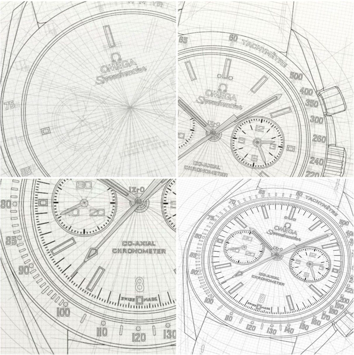 用最简单的尺规和铅笔,设计一枚高级腕表的外观,虽然没有电脑设计那么精确,但是传统的设计方法总能给设计师带来更多的灵感,最后的呈现结果也极具震撼效果。