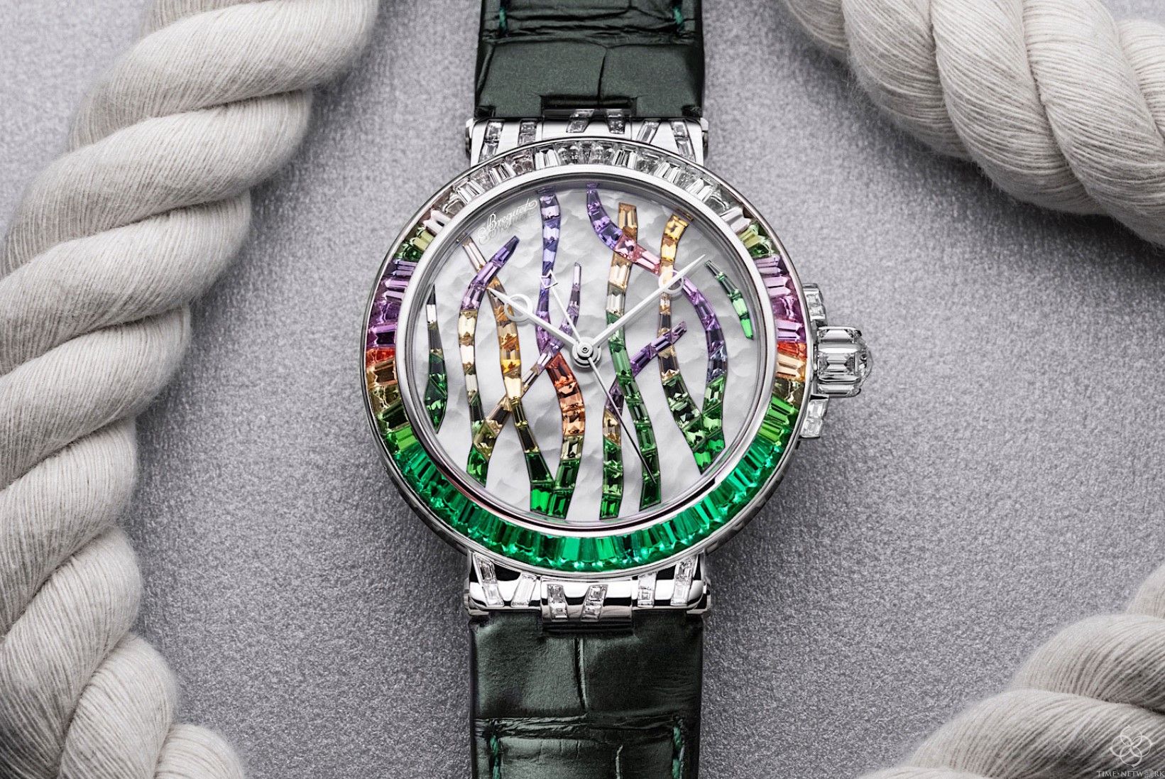 用钻石和宝石来做画,可能也只有极少数的顶级腕表可以实现。极难镶嵌和色彩协调的异形钻石和宝石被安排到一个方寸之间的腕表表壳、表盘、甚至是表冠上,极致工艺,王者之风!
