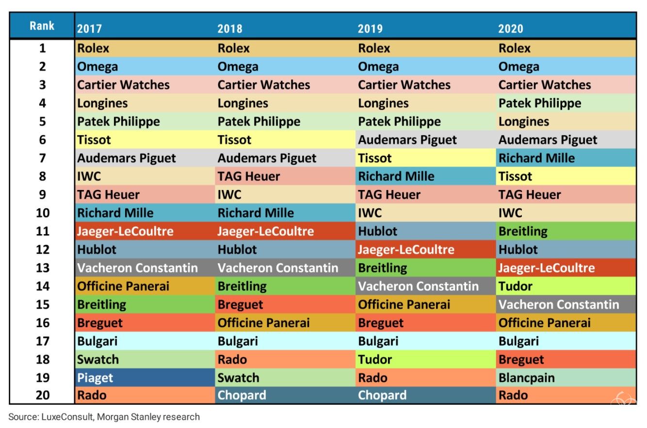 盘点2020年瑞士手表大品牌销量排行榜,几家欢喜几家忧!
