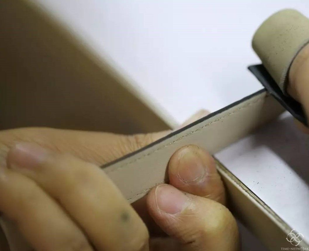 皮料虽然是用刀具切割而成,但边缘还是多多少少有毛边。所以为了整洁,同时也是增加防水性,表带的切割边缘都要包裹起来。