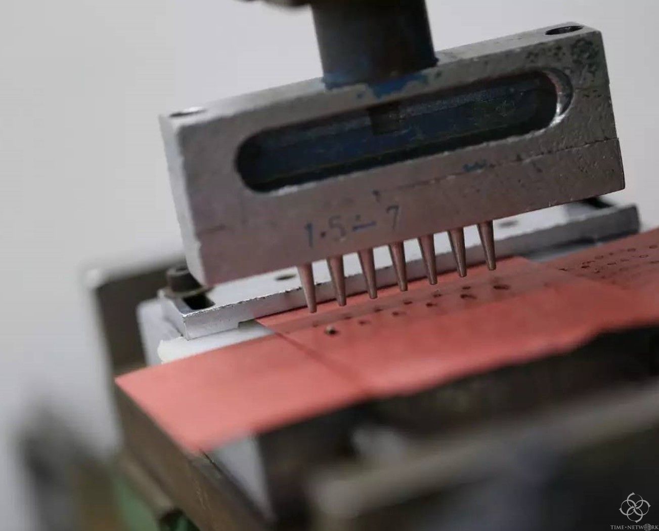 另外,针扣舌头位置的打孔同样也有专用的模具,针对不同宽度的表带有不同的设计。