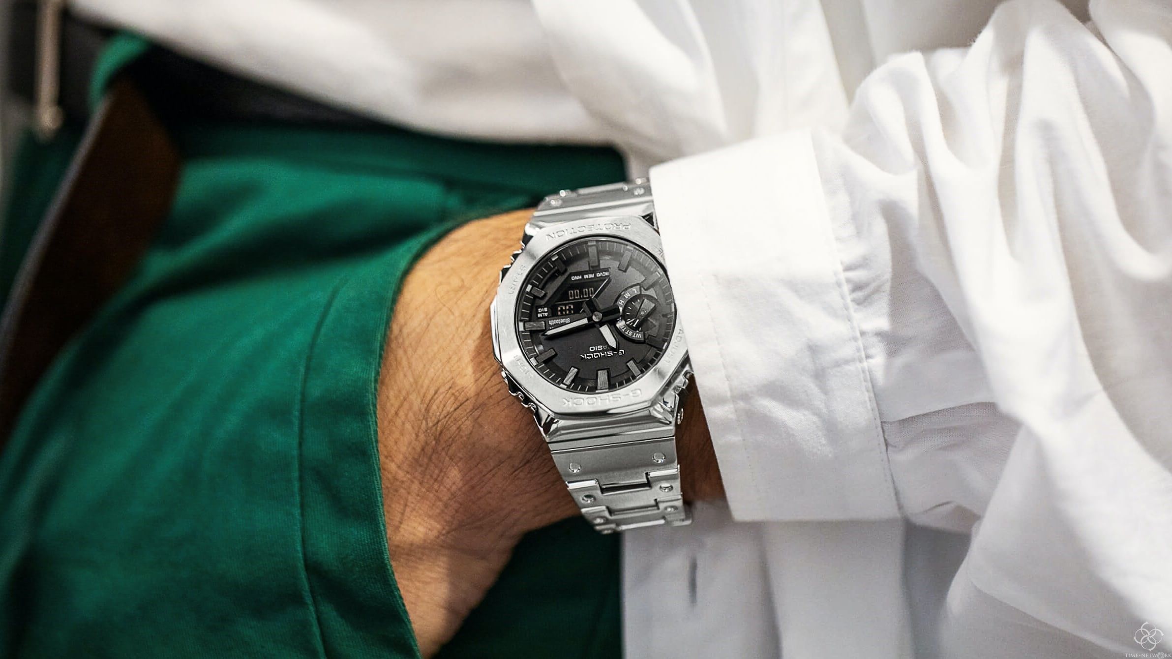 在Swatch与Omega联名款大获成功之后,Swatch的竞争对手Casio也紧急行动,推出了全钢款腕表,由于外圈八边形的设计和爱彼的皇家橡树有些类似,所以这款G-Shock又被成为CasiOak,有些碰瓷的感觉,因为爱彼绝不会和G-shock共同推出联名款。