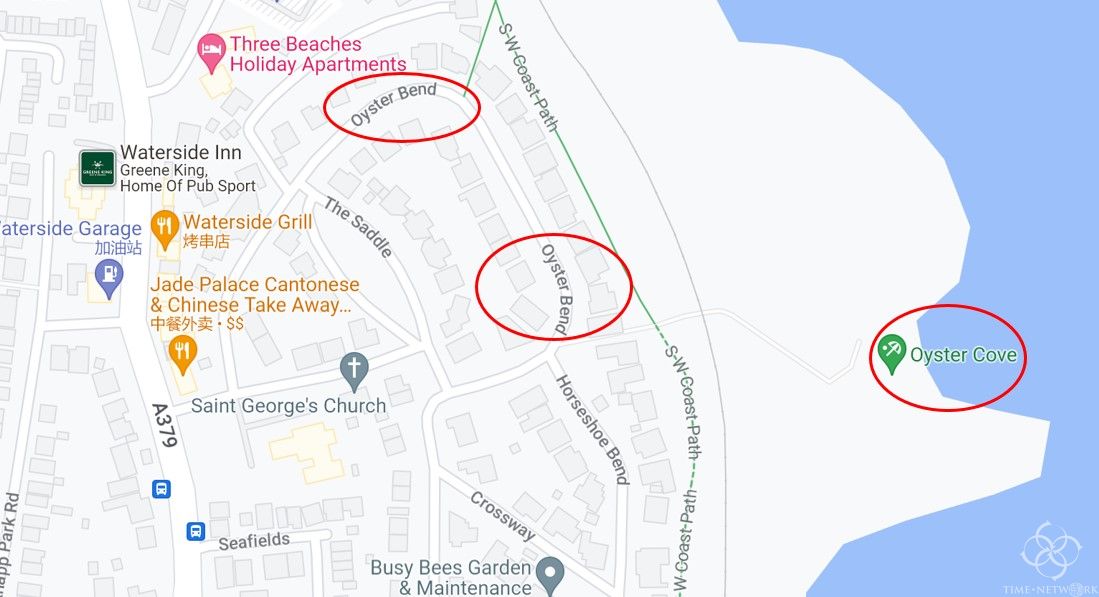 在地图上,确实也可以找到这个名为Oyster Bend的街道,甚至还有Oyster Cove的地方。看来两姐妹所言不假。