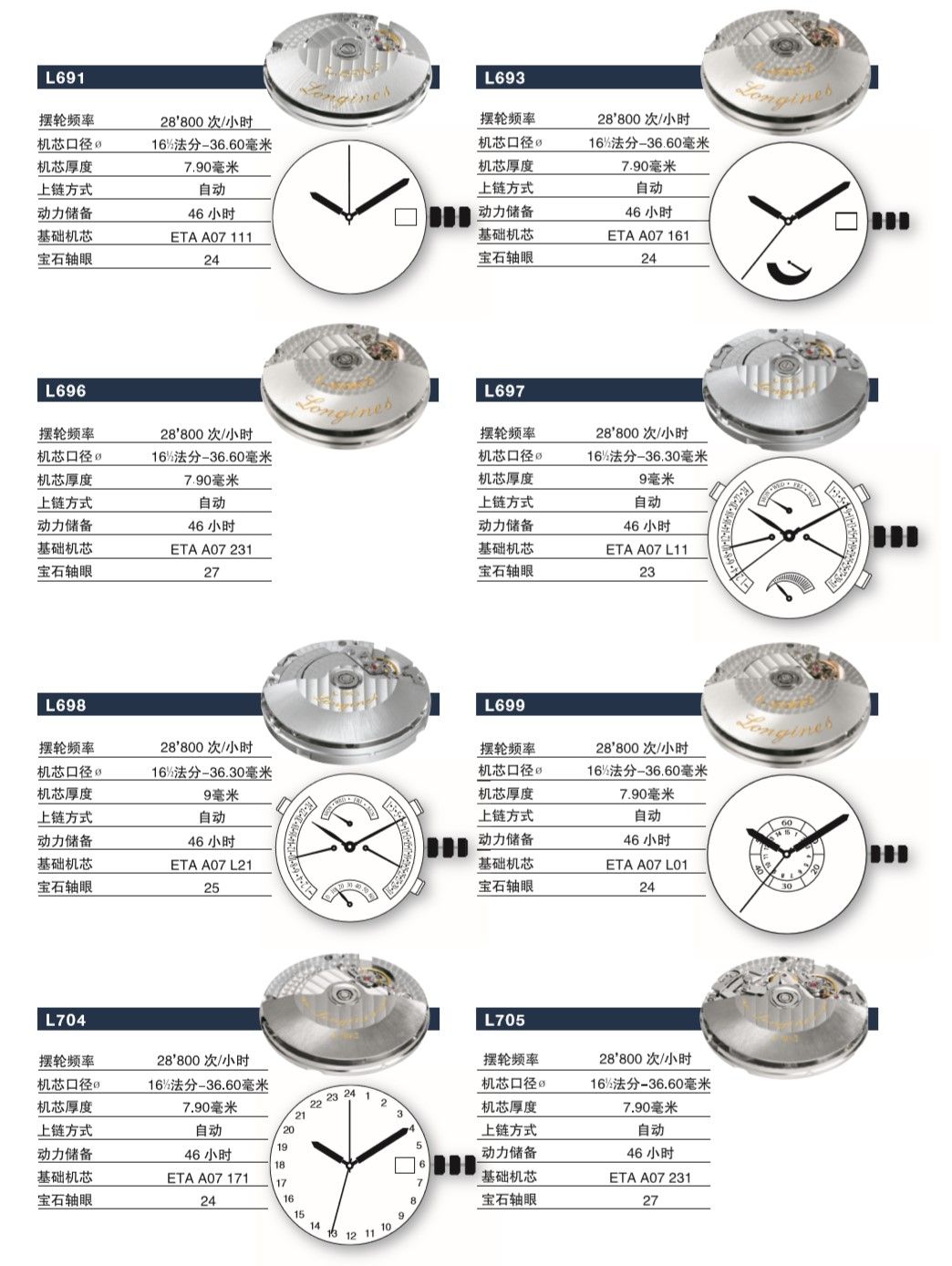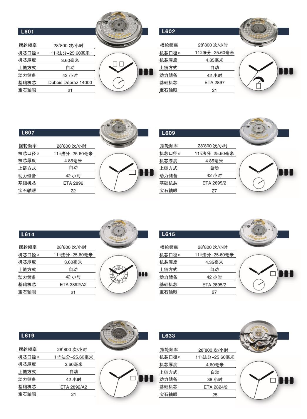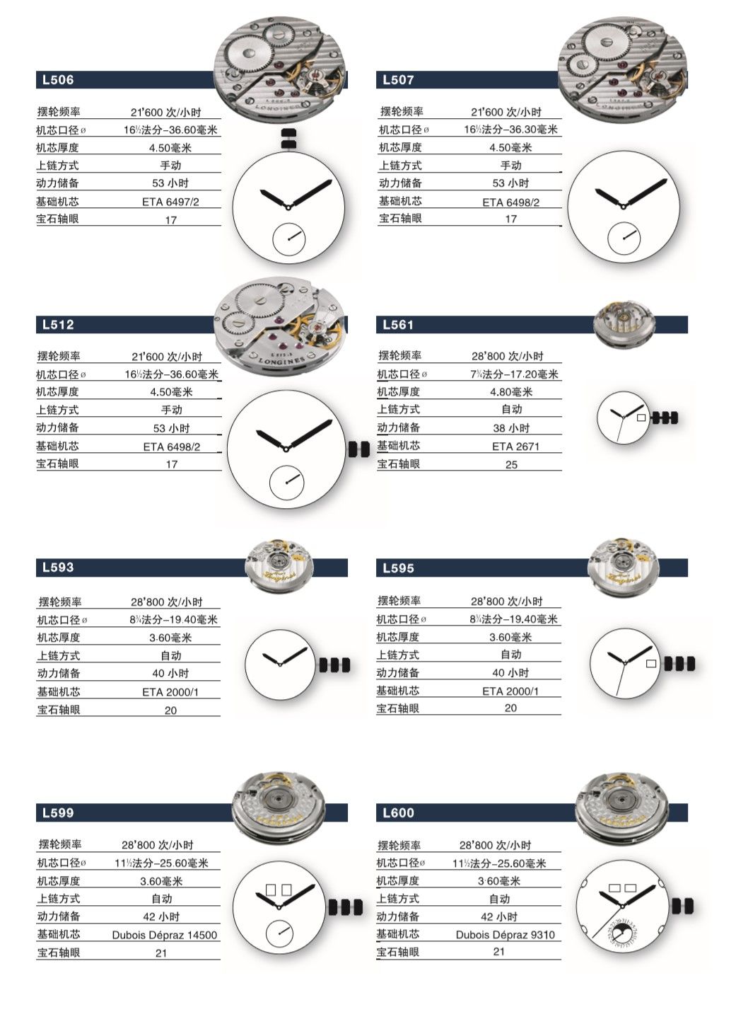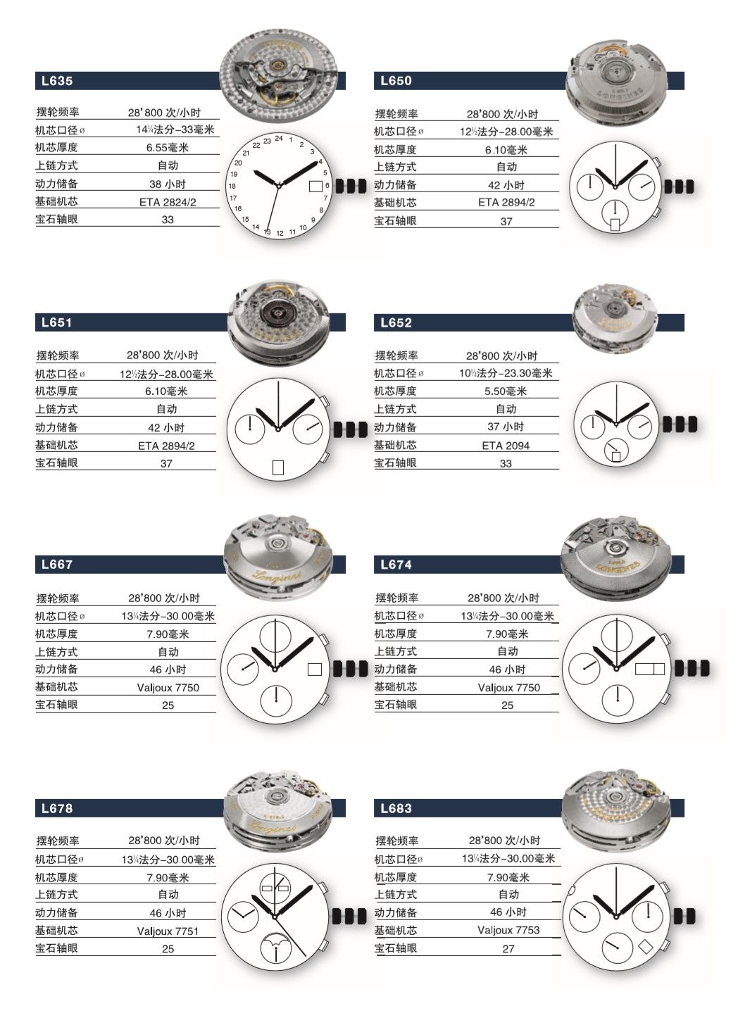 浪琴手表机芯参数大全