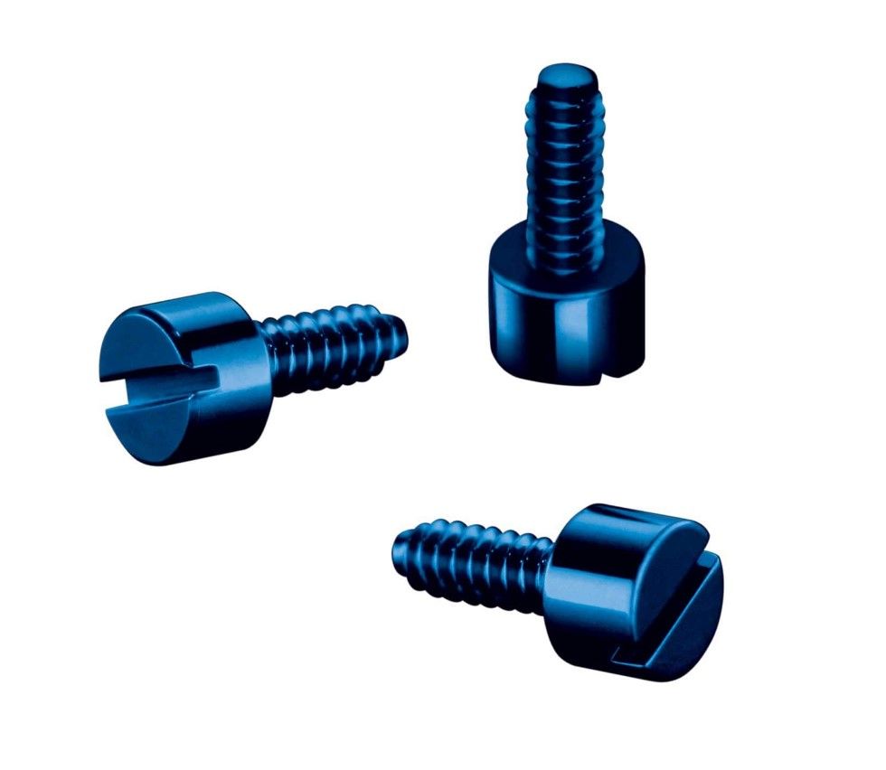 其实不难,一些不锈钢螺丝被慢慢加热至摄氏约300度,此螺丝便会呈现出独特色调,在这个过程中,钢面盖上一层超薄的磁铁矿(Fe3O4),菊蓝亮光泽则因这层氧化物而形成。