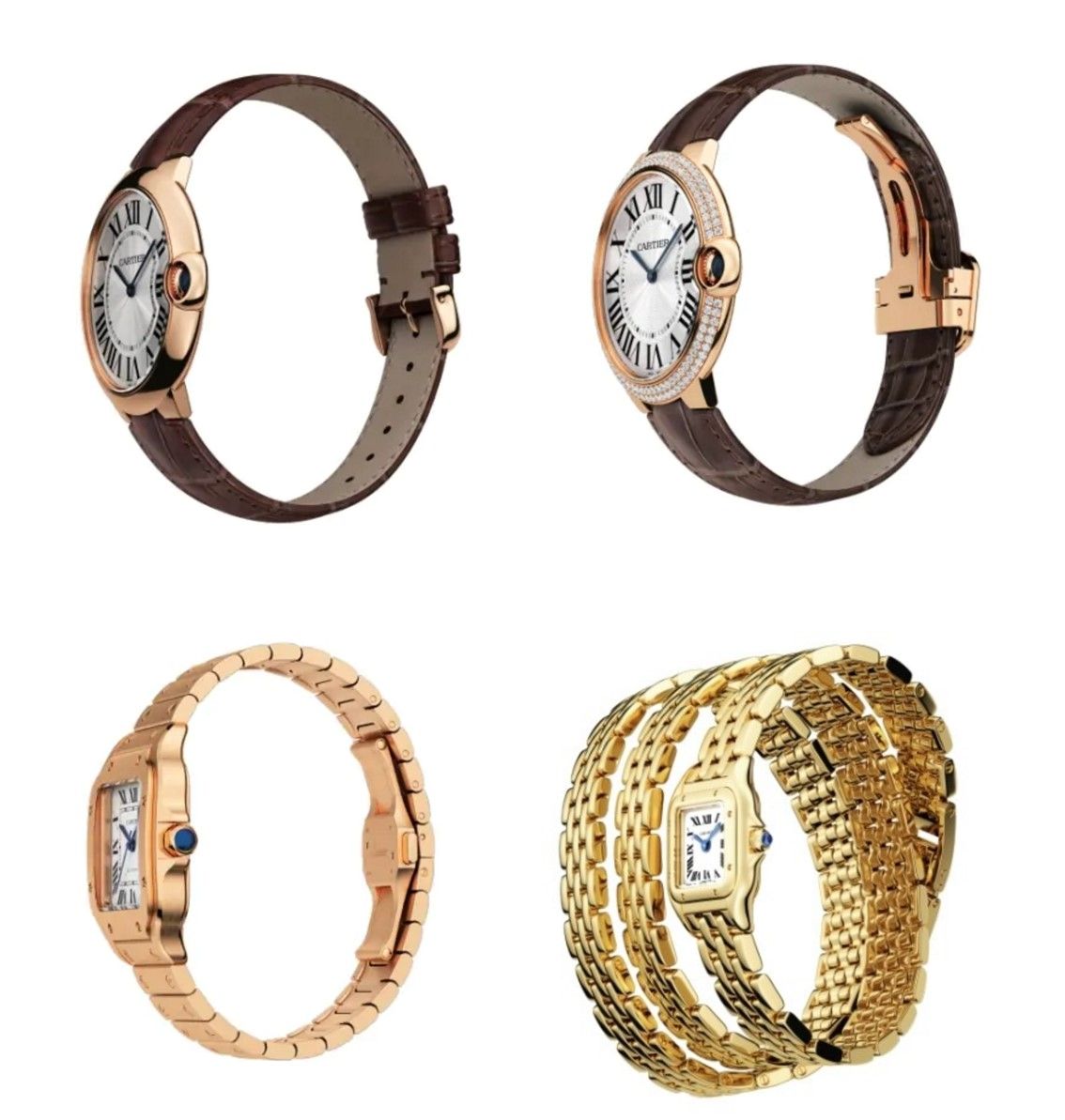 各种色泽的贵金属材质的表壳和表冠