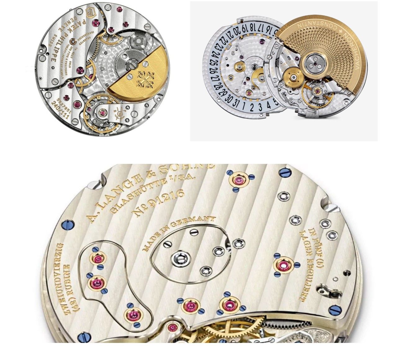 总结一下:高端金表中,除了机芯部件中黄铜材质的齿轮和部件外,很多有颜色部分的可能都是K金材质的,白金、黄金或红金。有的部件黄金分量很足,有的主要呈现无暇的工艺和美观效果。确实是值得你收藏的好表!