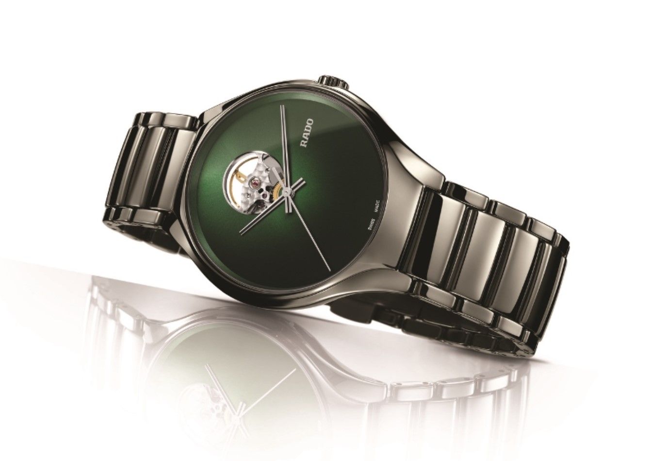 全新Rado瑞士雷达表True真系列奥秘自动机械腕表的表盘尺寸为40毫米,其点睛之处即为位于12点钟位置的镂空小圆窗设计。该设计令腕表内部的摆轮一览无余,若隐若现的律动之美令人回味无穷,使佩戴者得以尽情领略时间的真正奥义。
