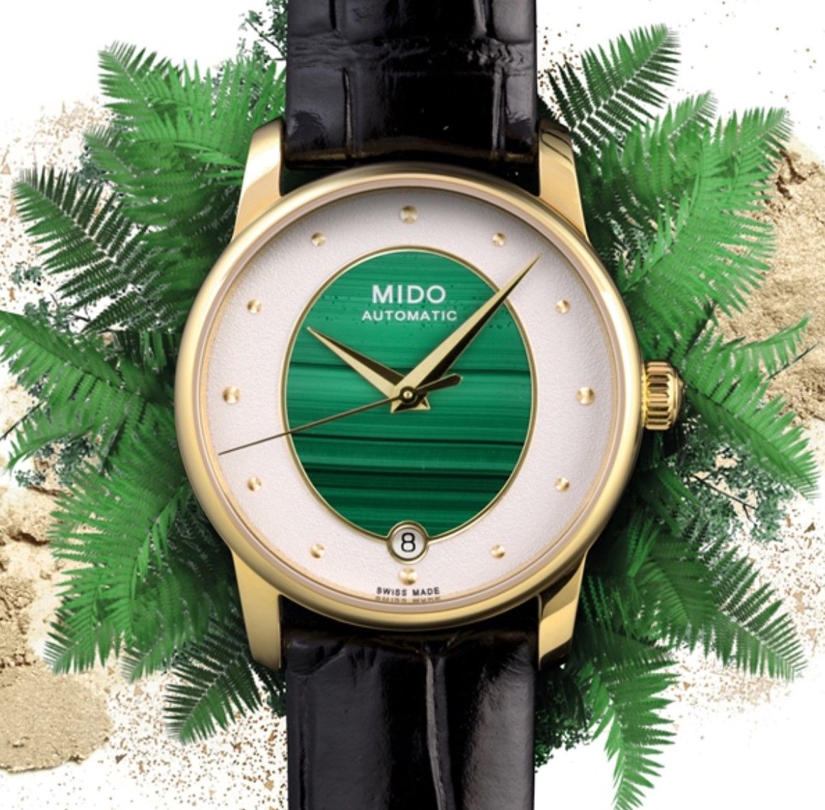 瑞士美度表BARONCELLI贝伦赛丽系列”晶灵”长动能女士腕表,丝光打磨不锈钢表带,百搭简洁,隽永恒远。华丽白色颗粒纹表盘中央镶嵌水绿色,更显清亮澄澈、流光溢彩,自内而外散发青春与生命的气息,令人见之不忘。独特的设计赋予腕表独一无二的气质。独具个性的矿石与瑞士美度表经典的设计理念交相呼应,”晶灵”时刻,绿意融融,自草木,而动人。