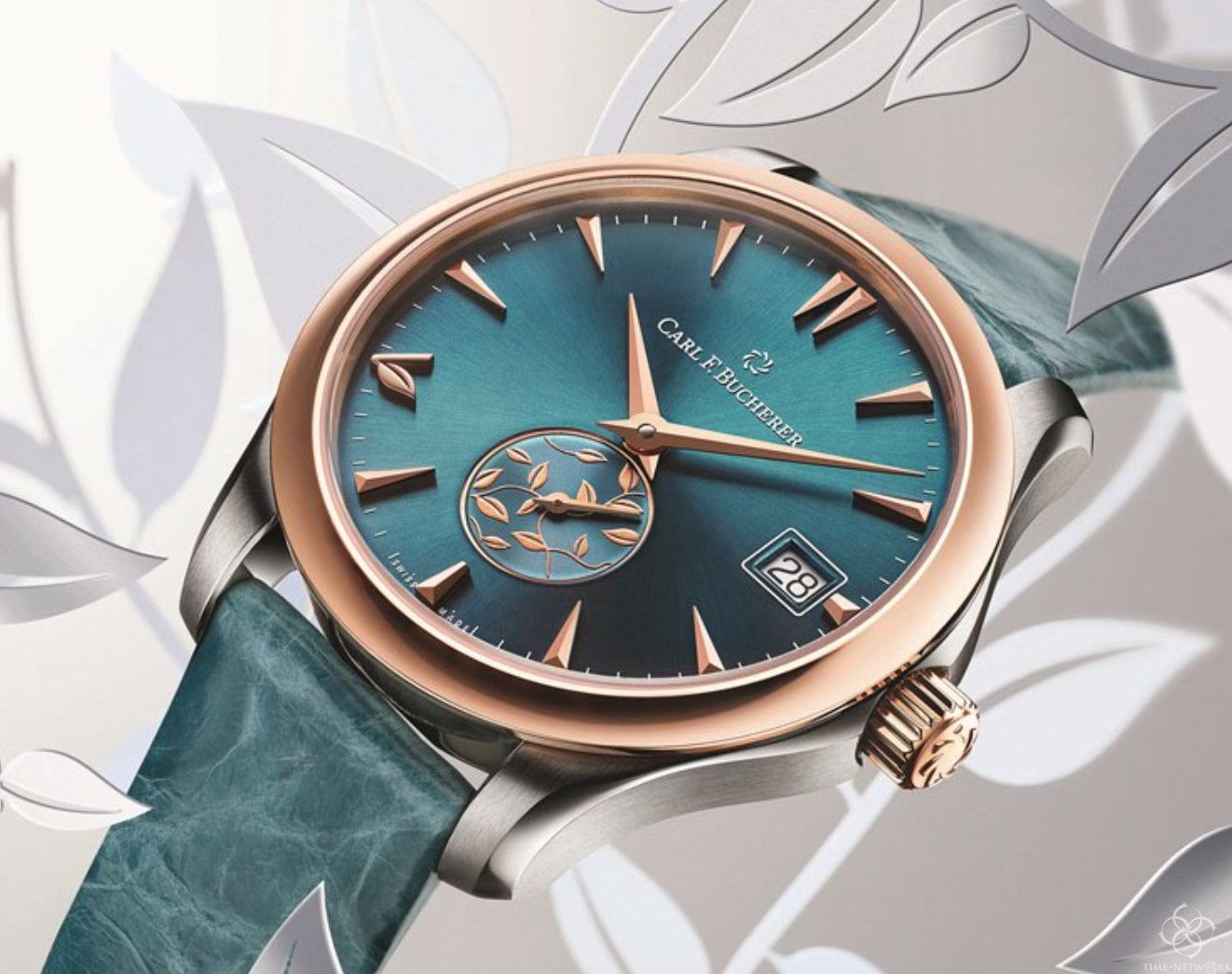 宝齐莱马利龙自动日历LOVE腕表蓝绿色款,从大自然及李冰冰旗下的L.O.V.E 公益品牌中汲取灵感,蓝绿色表盘在不同光线下折射出耀目光芒,犹如沐浴在阳光下的湖水,碧波荡漾。置于6时位置的小秒针盘,缀以L.O.V.E 公益品牌的小叶子标志, 与8时位置的叶子标志刻度遥相呼应。