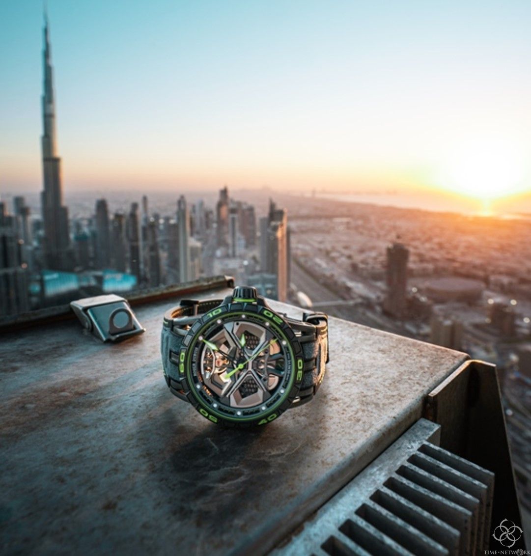 崭新的Excalibur Huracán Performante腕表,受Lamborghini Squadra Corse兰博基尼赛事运动部及其Huracán Performante超跑车独特设计美学的启发,饰以DLC钛合金涂层,并搭配标志性的绿色装饰元素,赋予腕表全新活力,散发出强烈的时尚气息,在精准的时间刻度与无限的时空维度上探寻,打破风格边界,于腕间绽放极速超跑的美学缩影。便捷的快拆式表带更能让你随时切换风格。