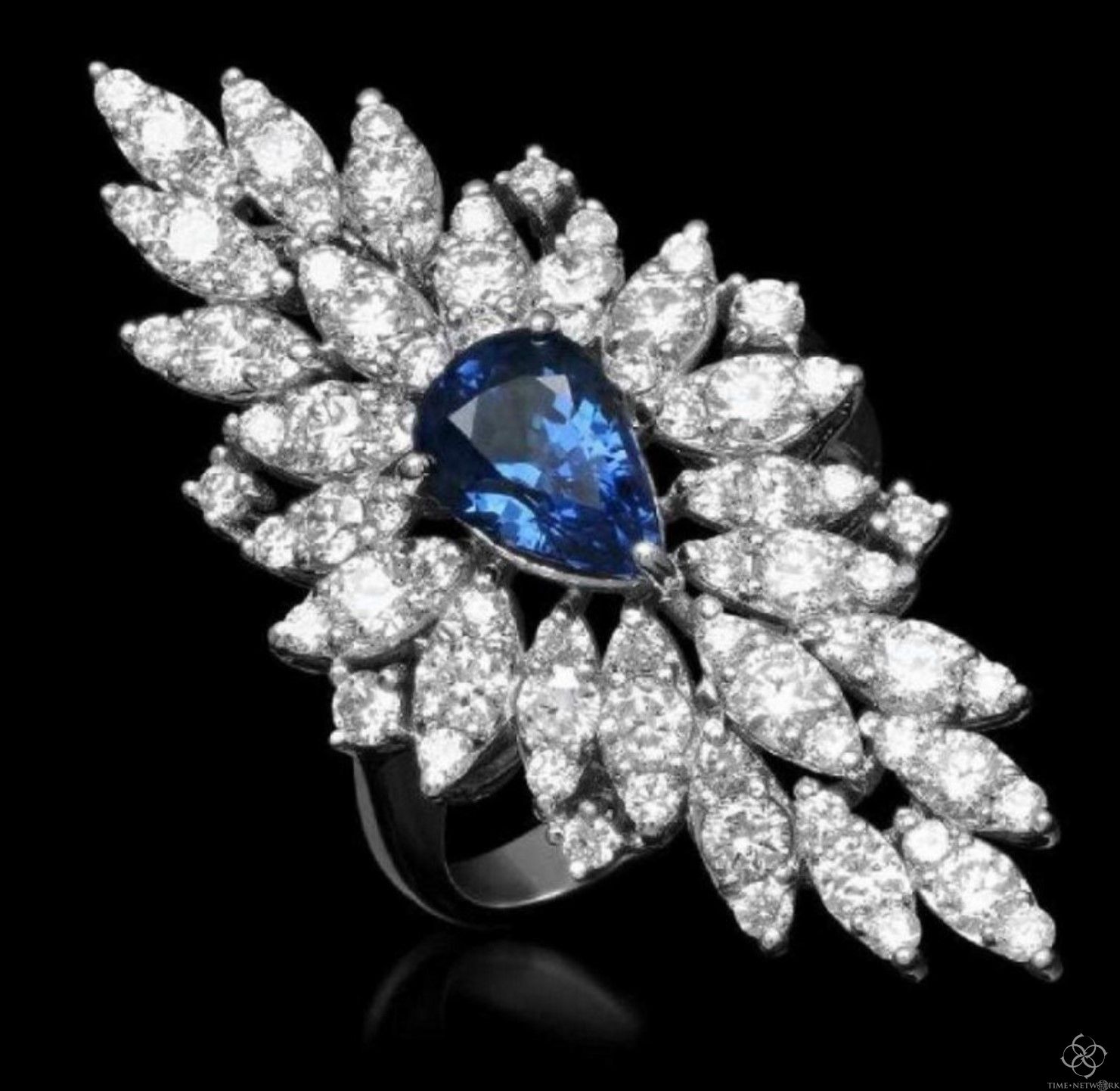 顶级的蓝色宝石与大克拉的纯白钻石搭配后,愈加显得蓝宝石的深邃和迷人。