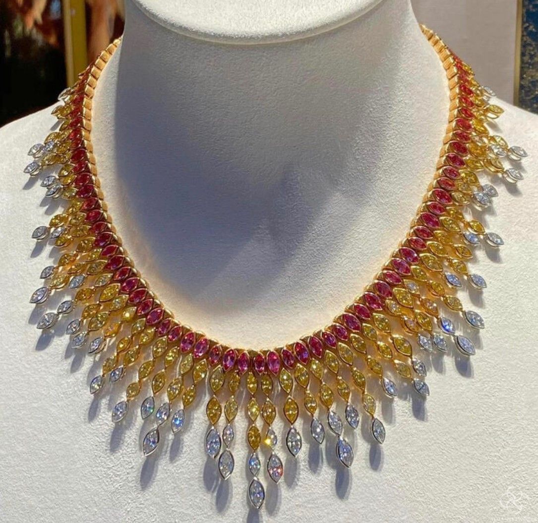 曾经和一位在顶级珠宝品牌公司的技术人员交流,他说品牌总部对于高级珠宝的彩色宝石选材非常重视,通常都由经验十分丰富的资深人士专门负责采购宝石,有些必须是总裁亲眼看过才能组后拍板。