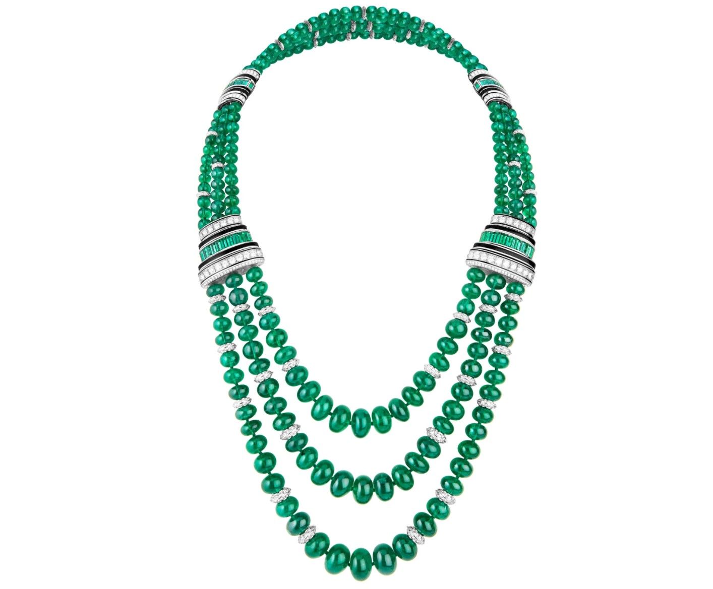 宝诗龙的钻石、缟玛瑙、祖母绿项链;