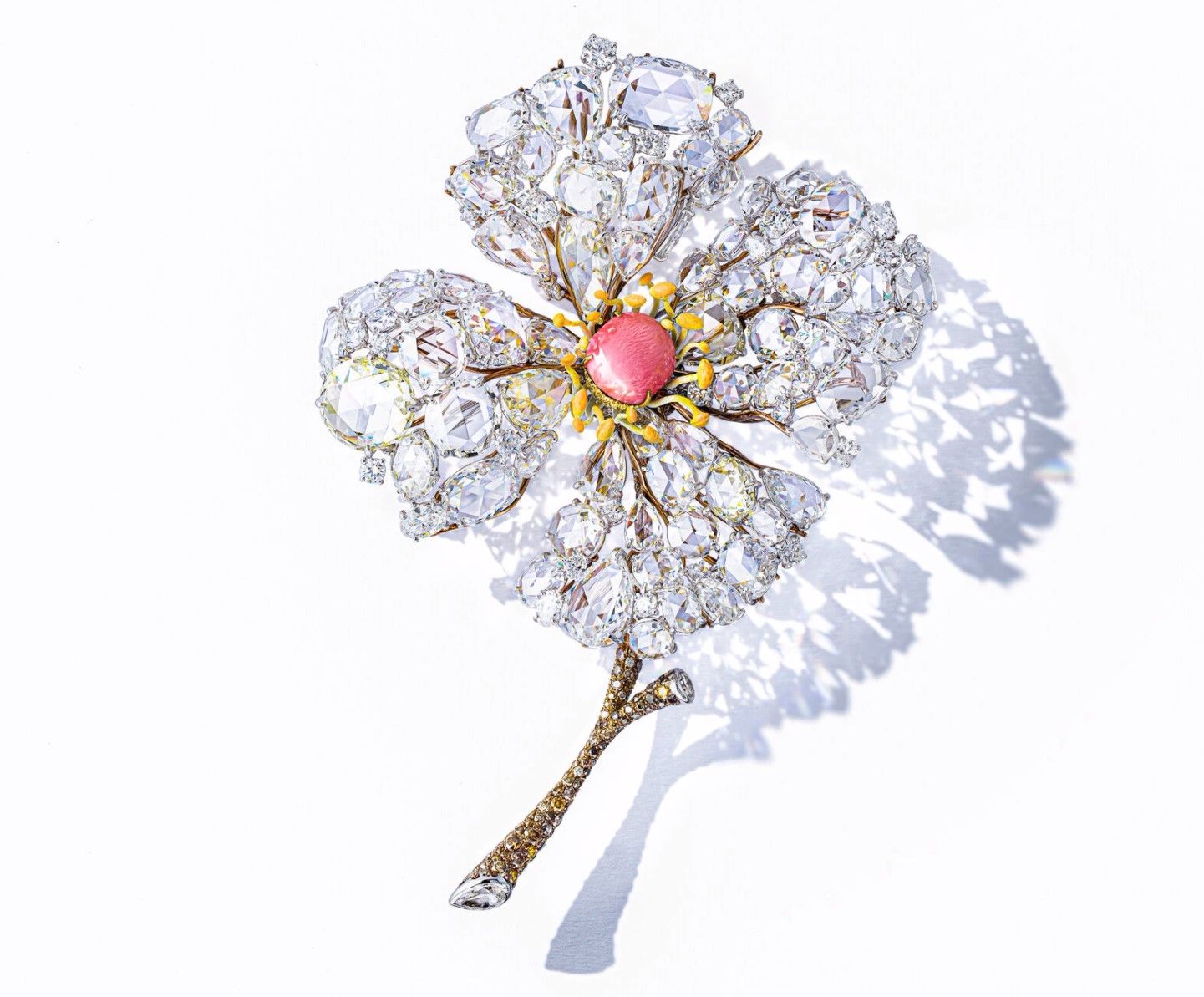 CindyChao的玫瑰切割钻石、珍珠贝母胸针;
