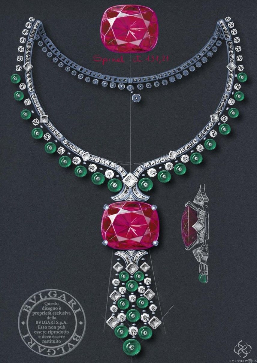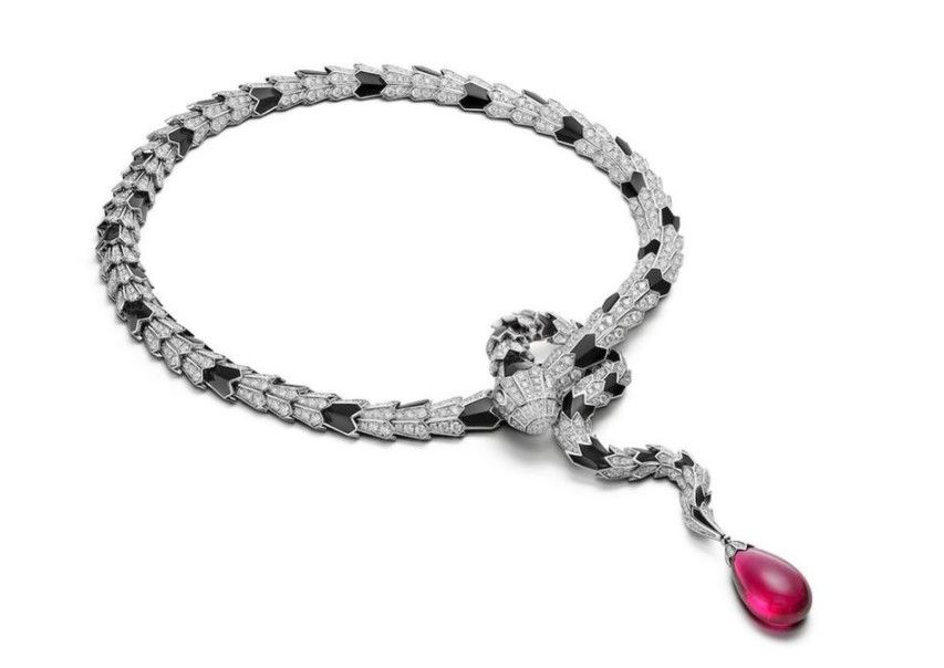 著名品牌宝格丽昨天发布了最新款高级珠宝,Magnifica系列中,一款项链用131.21克拉的红色电气石作为主石,也是目前存世的四大红色电气石之一。