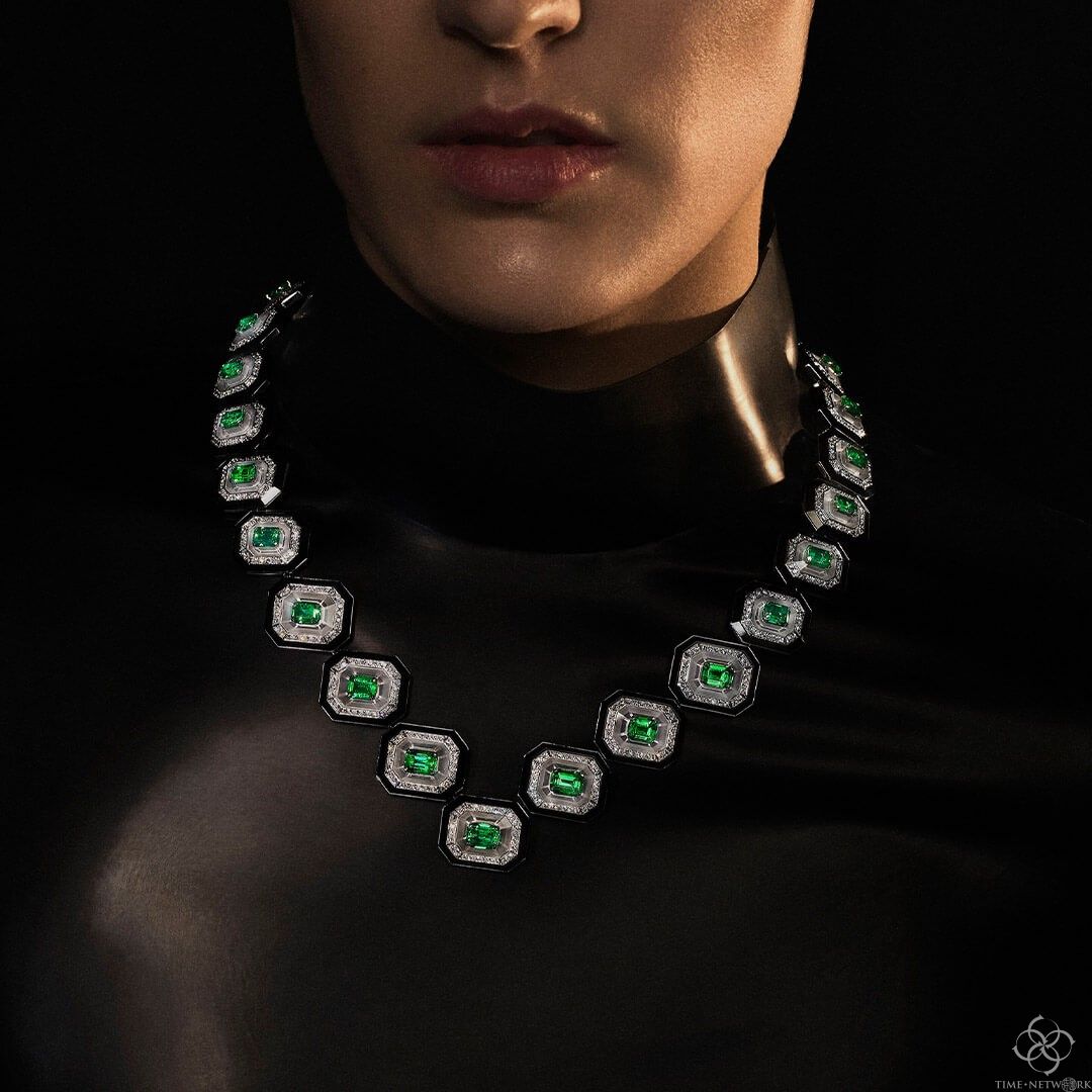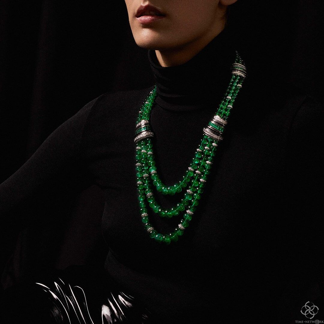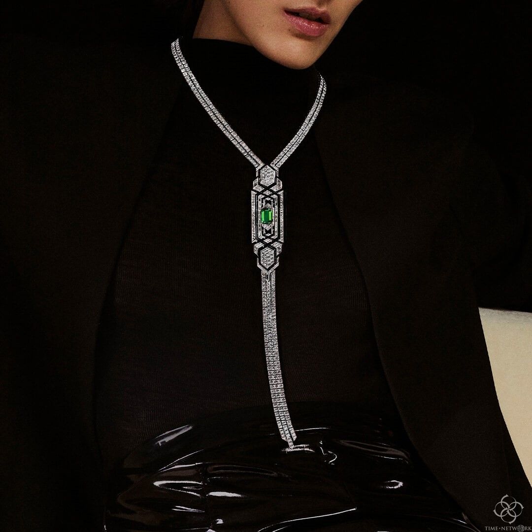 巴黎中心的凡登Vendôme广场最古老的珠宝店应该是宝诗龙Boucheron,品牌为庆祝装饰艺术时期和繁荣的二十年代,创意总监克莱尔·乔伊斯尼(Claire Choisne)重新设计和修改了该家族丰富的档案中的一些经典作品。她重新制作了一条1928年由帕蒂亚拉王公委托制作的翡翠珠项链,并将其制成了一款可变形的Plastron Émeraudes,也可作为项链和手镯佩戴。乔伊斯尼认为高级珠宝是无性别的,因此她的Lavallière Diamants项链的中心吊坠镶嵌在钻石、玛瑙和黑漆中(其灵感来源于1925年的蝴蝶结设计),男女都可以取下作为胸针或领针佩戴。佩戴这些作品的模特儿也非常中性,让你很难知道他们的性别。