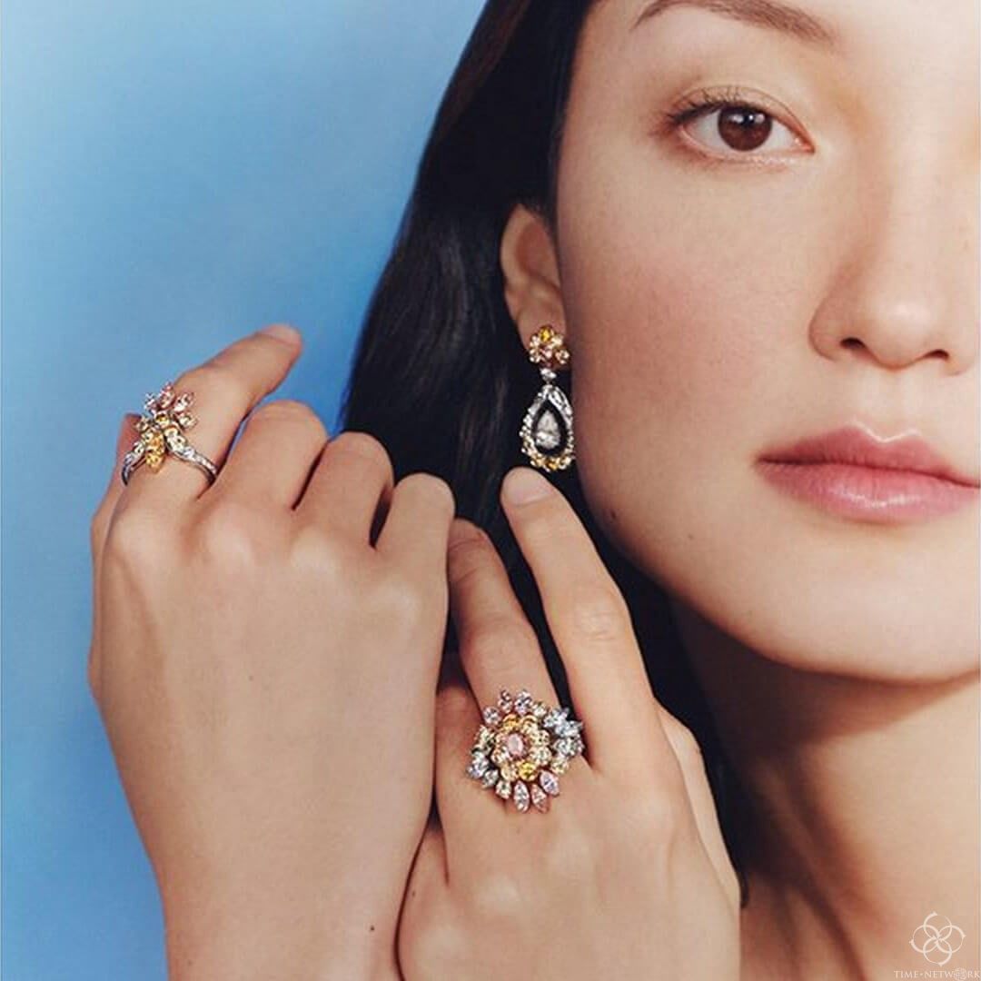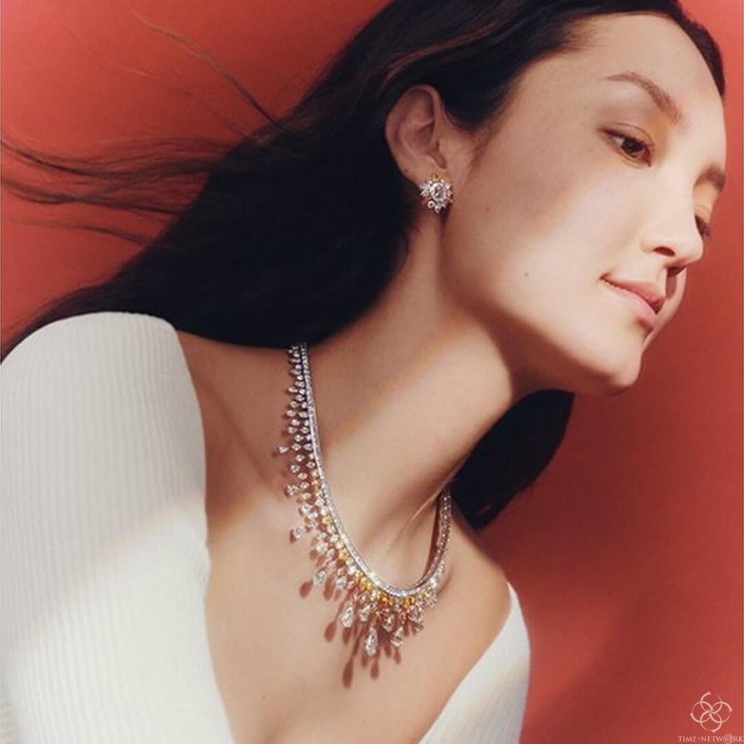 钻石大亨戴比尔斯新款的高级珠宝,这套名为《自然的倒影》的作品中捕捉了戴比尔斯钻石产地加拿大和非洲的美丽风景。莫特拉斯特奇迹项链上镶嵌着粉色、橙色和黄色的钻石,是对南非莫特拉斯峡谷日落的纪念;埃尔斯米尔珍宝套装由最优质的白色钻石打造而成,让人想起北极地区坎迪安.埃尔斯米尔岛的雪原;奥卡万戈格蕾丝帕鲁尔(Okavango Grace parure)采用了博茨瓦纳奥卡万戈三角洲(Okavango Delta)的图案,镶有各种深浅绿色的粗糙和抛光钻石。钻石恒久远,一颗永流传,戴比尔斯不愧是钻石的代名词。