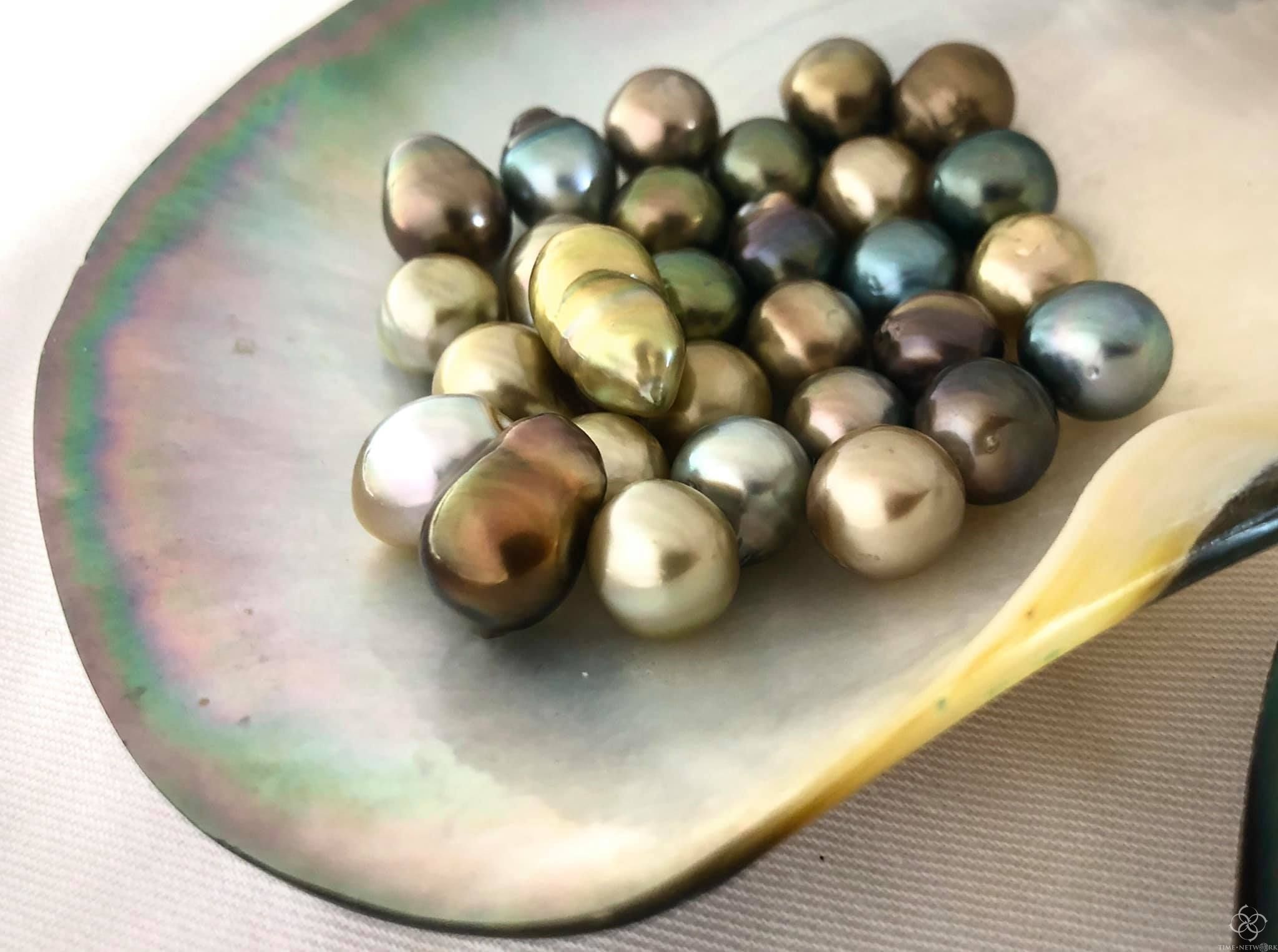 此外,在实验室中,了解颜色机制对于确定珍珠的颜色是天然的还是结果或处理(例如染色、加热、漂白)至关重要。在斐济,当地的珍珠牡蛎珍珠贝的外套膜组织细胞分泌出不同寻常的土黄色珍珠层(见图片中牡蛎的珍珠母壳内部),因此,这些养殖珍珠的颜色也将以这种方式着色。