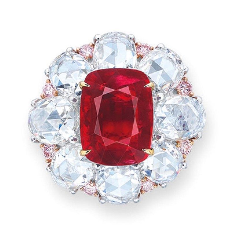 6.06-carat Burmese “pigeon blood red” cushion-shaped ruby with an estimate of $800,000 - $1.2 ... [+]