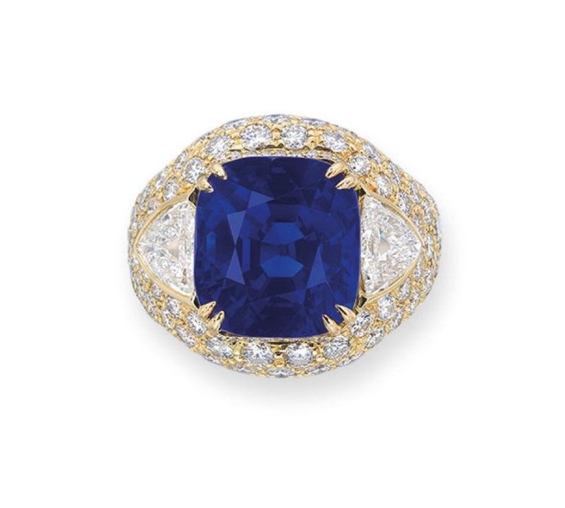 14.70-carat cushion-shaped Kashmir sapphire with an estimate of $518,433 - $777,650