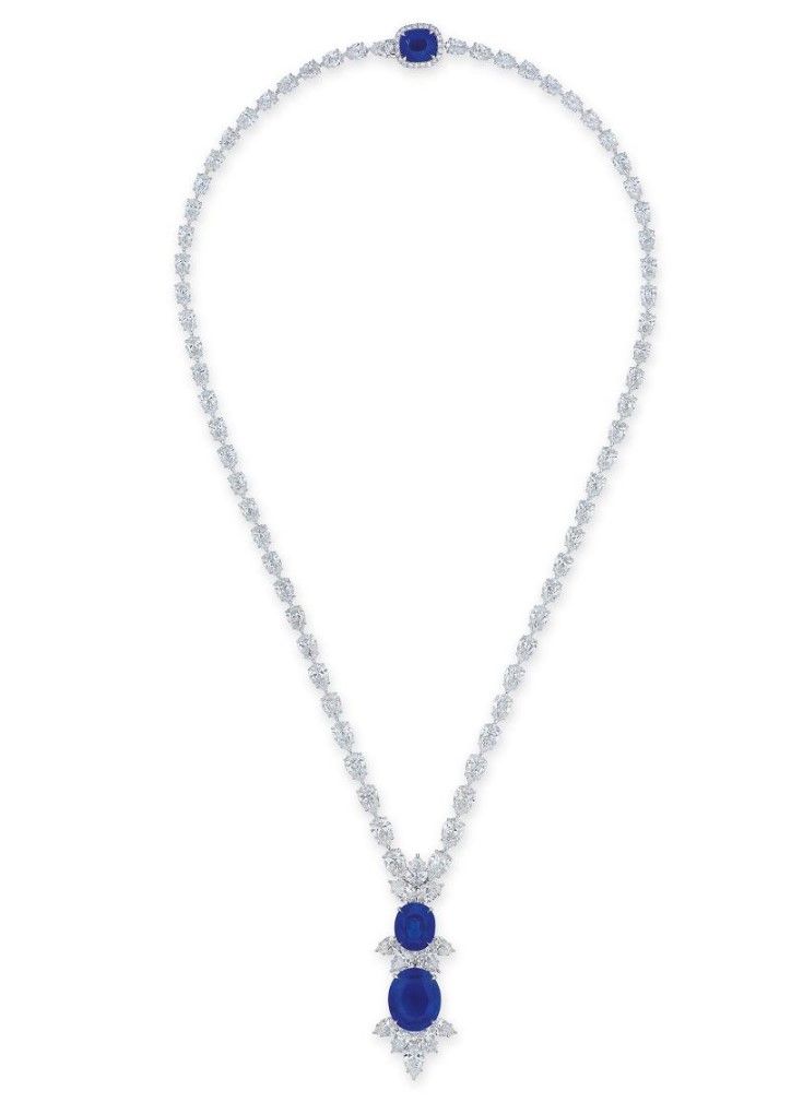 Necklace with two oval sapphires of 12.81 and 6.50 carats and a cushion-shaped sapphire of 2.74 ... [+]$750,000 - $1 million