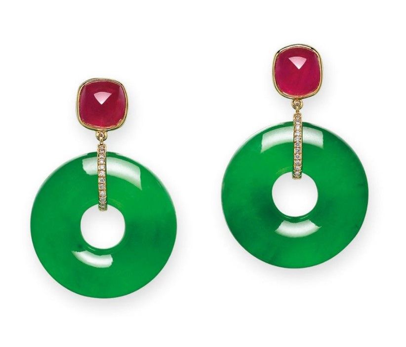 Jadeite hoop earrings adorned with an estimate of $518,433 - $777,650