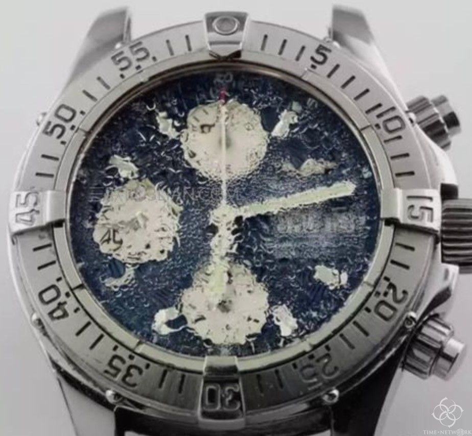 表面雾化是腕表其中一个最显眼的问题。假设表面完整无缺,手表内的雾气通常来自退化的防水配件,当手表被浸在水里后就会呈现出来,尤其在游泳之后。其他情况下也可能出现相同的状况,例如当你从较冷的环境走到较热的地方,结果也是一样,所以你的手表也是时候立即进行专业保养了。保养时需把手表拆开,在水份渗入表壳其他零件并造成损坏前,尽快把湿气排走。这时候需要装新的表底封盖,然后检查表冠及表面,确保裝嵌恰到好处。若手表长期处于潮湿环境下,表底封盖的退化会导致手表零件的氧化。定期保养包括更换全新的防水配件,便能排除一切由防水配件引起的相关问题。